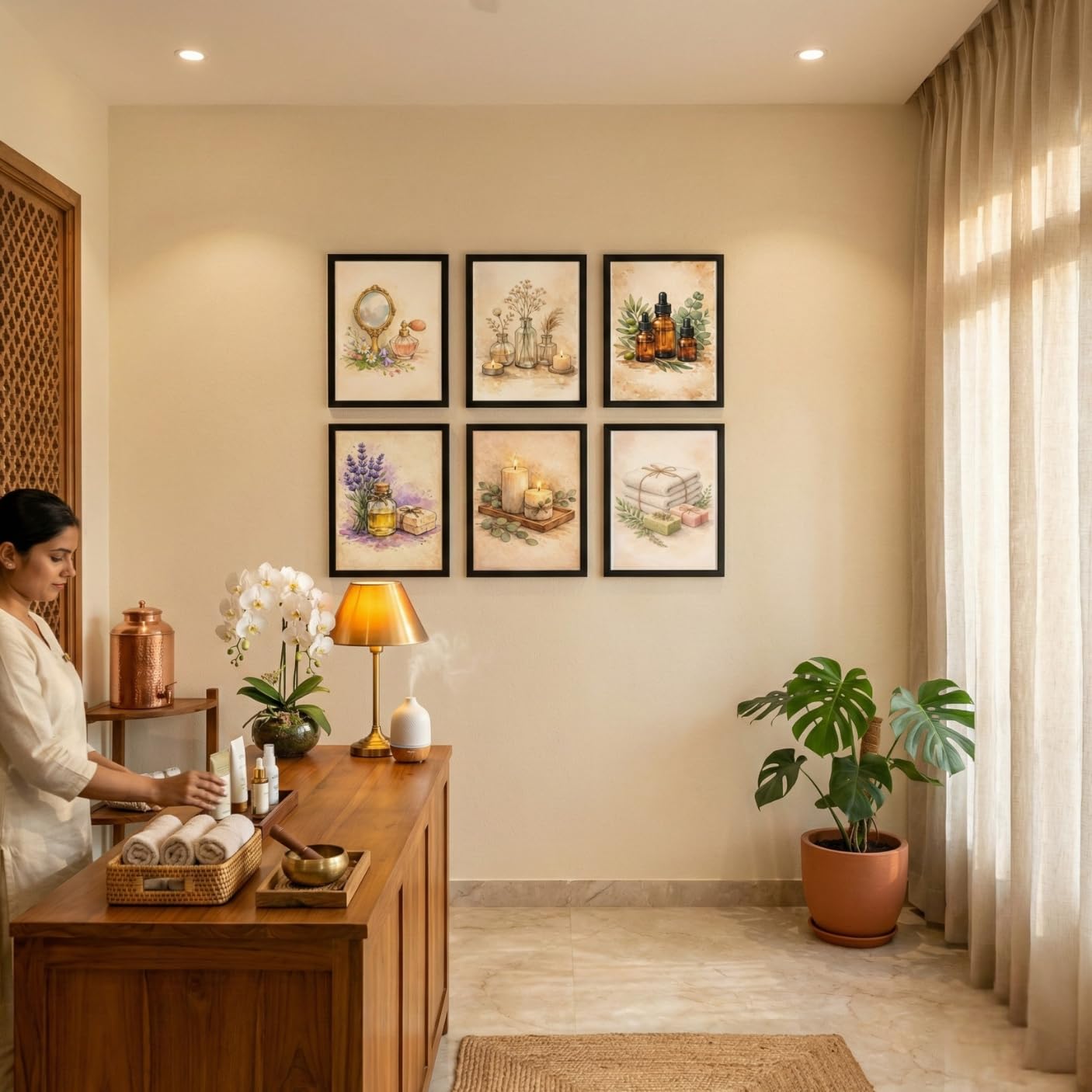 Spa Wall Decor Frames Combo – Set of 6 (9 x 12 Inches) | Calm & Relaxation Art for Spa, Salon, Wellness & Home Decor (Ritual Objects)